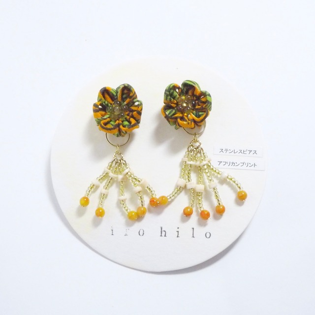 【イヤリング】アフリカ布のお花の耳飾り #03